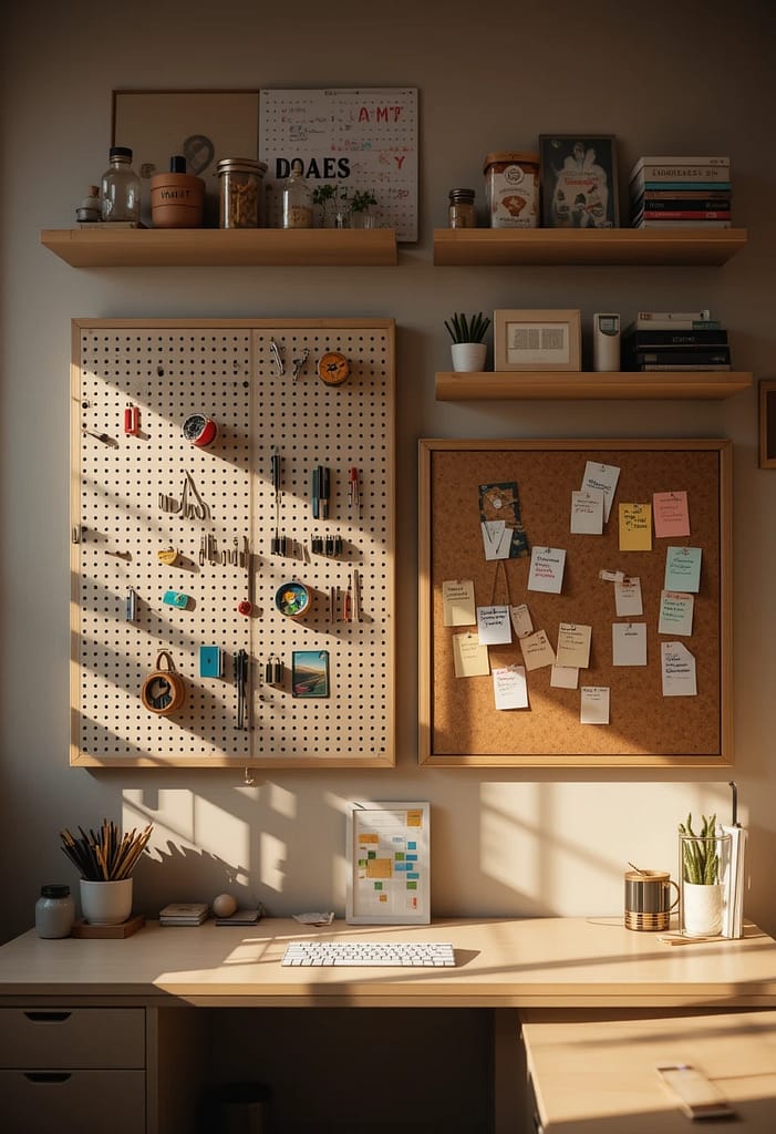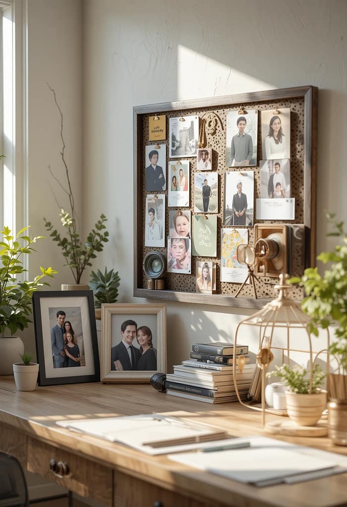 Your home office should reflect you. Add framed family photos, artwork you adore, or souvenirs from trips that make you smile. A vision board can keep your goals in sight, while a small corkboard can hold inspiring quotes or affirmations.