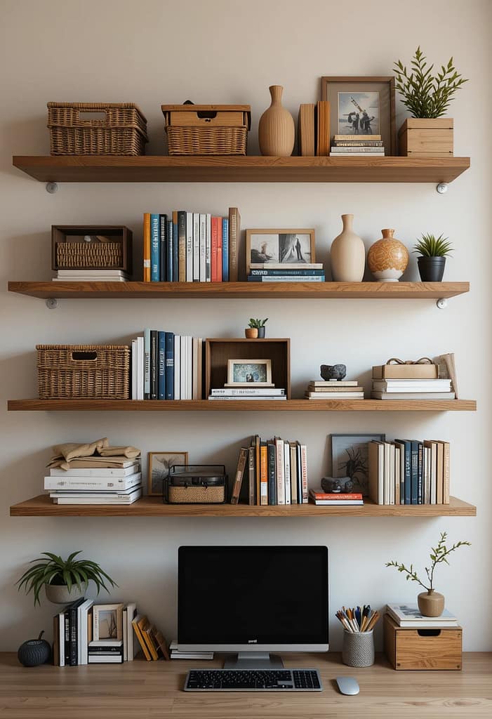 Your desk and chair aren’t just furniture — they’re your work partners. Go for an ergonomic chair that supports your back and a desk that fits your space without feeling cramped. If your office is small, consider wall-mounted desks or fold-away tables. Style is important too, so pick pieces you’ll love looking at every day.